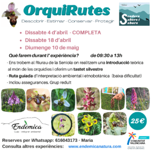 Experiència personalitzada o amb grups reduïts on descobrim diferents espècies que creixen a la Marina Alta. Disponible de febrer a juny i octubre.